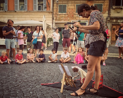 Late afternoon/early evening is when street artists start to perform. Our kids loved watching puppet shows, listening to live music, admiring real-life painting, and other beautiful activities. Trastevere is a very nice neighborhood to walk around as well. If you are here, you don’t want to miss the cute Ponte Sisto (which resembles a bit of Pont des Arts in Paris), and our favorite restaurant La Prosciutteria.