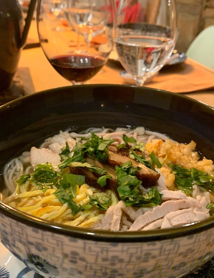 Hanoian noodle soup with chicken, egg, and pork (Bún thang Hà Nội)
