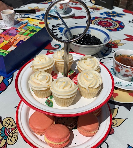 To celebrate the first week of distance learning, the kids asked for an afternoon tea party. Yes, of course! We had lemon blossom cupcakes, rose macarons, and earl grey chocolate macarons. Let’s get the party started!