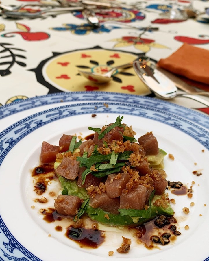 - Top with marinated tuna. Add a pinch of sea salt and freshly ground pepper if desired.