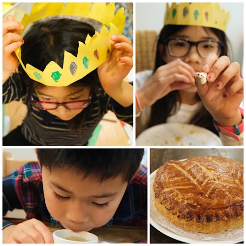 We celebrated Epiphany early this year – anticipating the chaos of the first school week after the holidays. Our youngest happily spent the whole afternoon making a crown while the oldest chose a trinket for the fève (she had a collection of trinkets just for this purpose – a very treasured responsibility!). After the dinner with roasted wild boar, the galette was brought out. The kiddos closed their eyes and chose their pieces of cake.