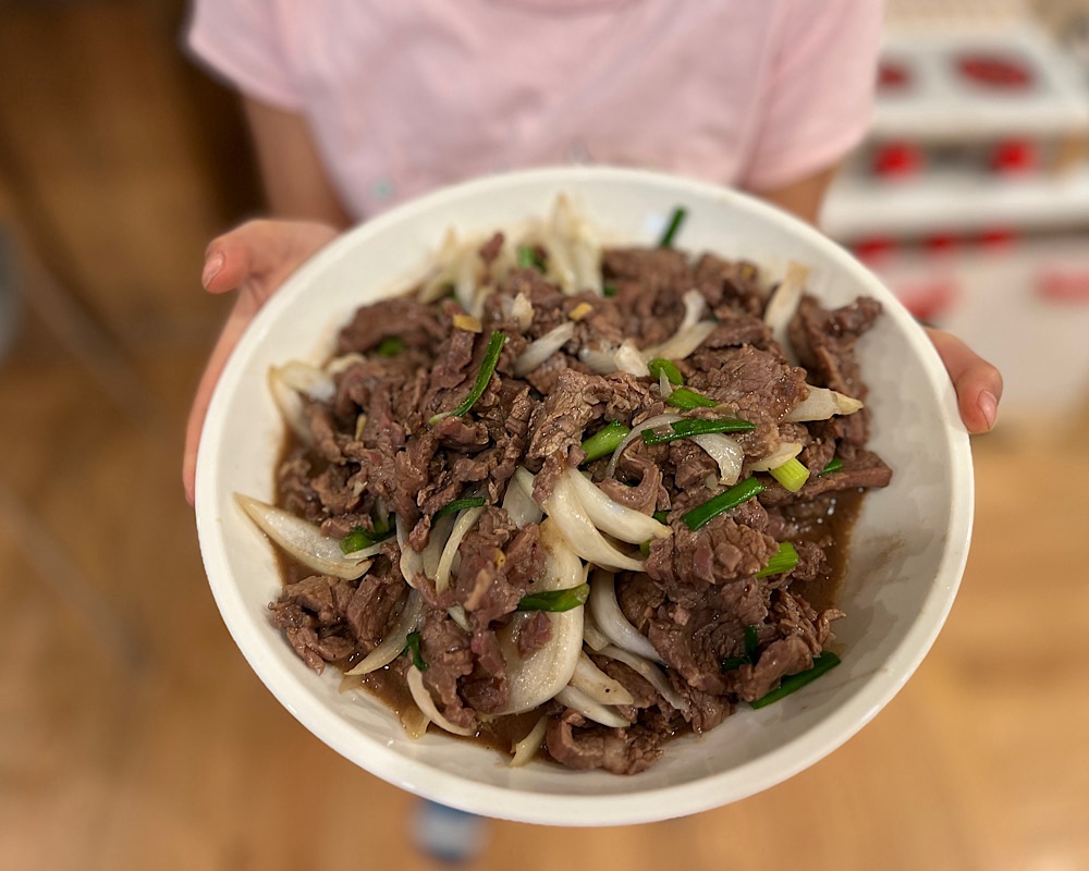 - Immediately pour the onions and scallions onto a plate. Set aside.