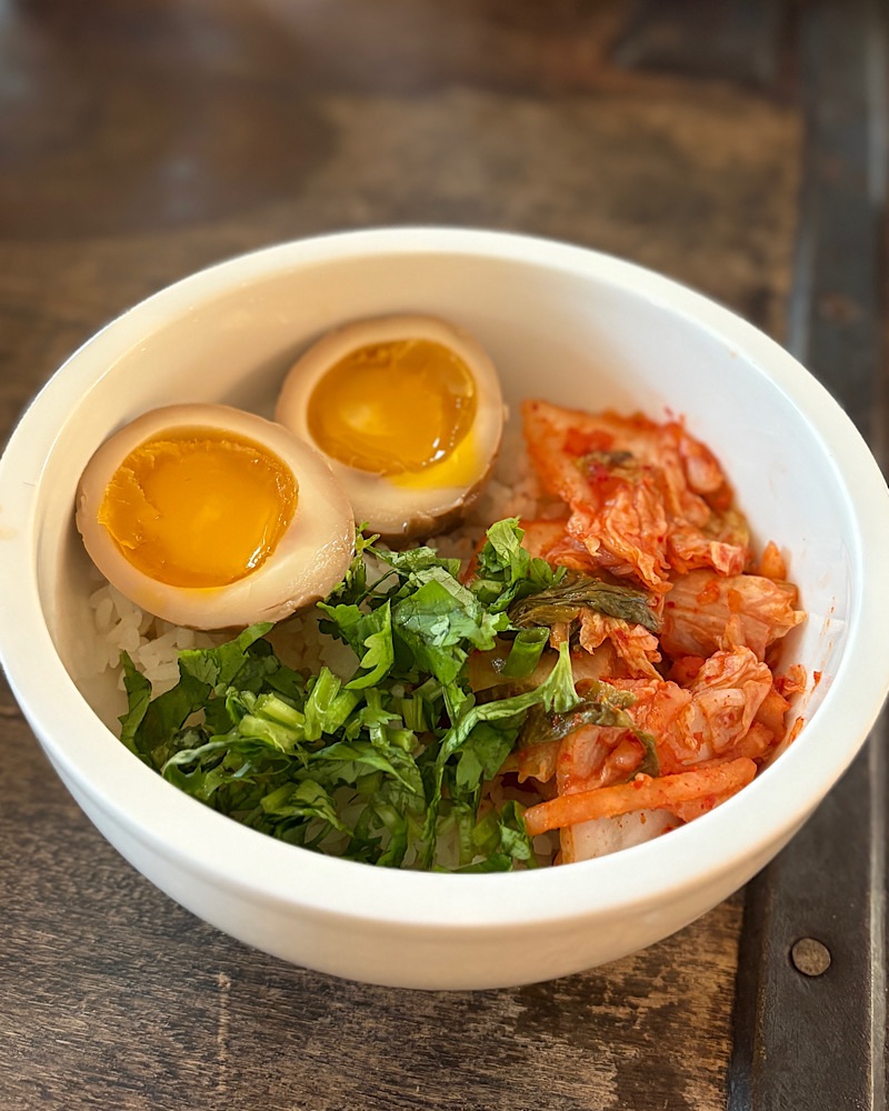 […] hot with steamed rice, kimchi, Korean marinated eggs, chopped cucumber, and chopped […]