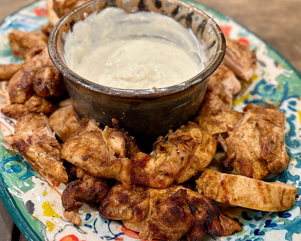 - Serve the chicken with garlic sauce and rice (or pita or salad)