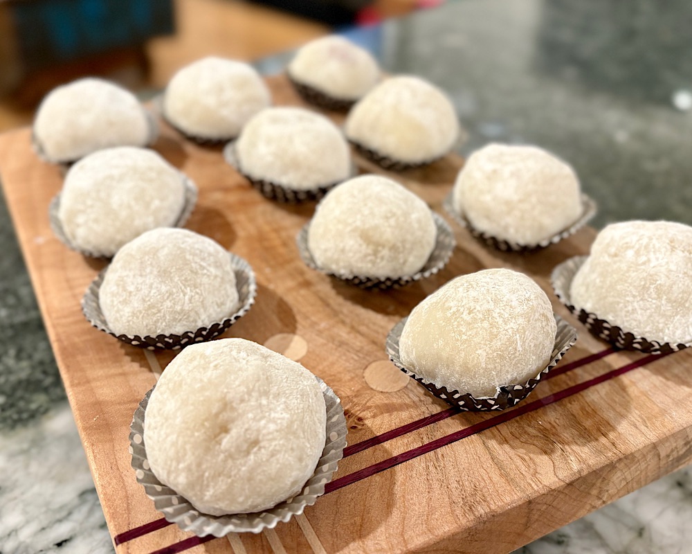 - Place each mochi onto parchment paper or a mini cupcake wrapper.