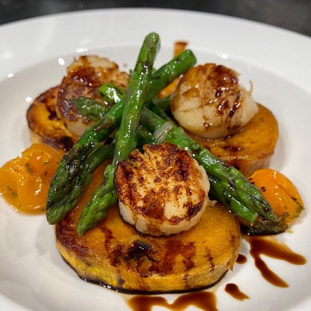 Seared scallops with sweet potatoes